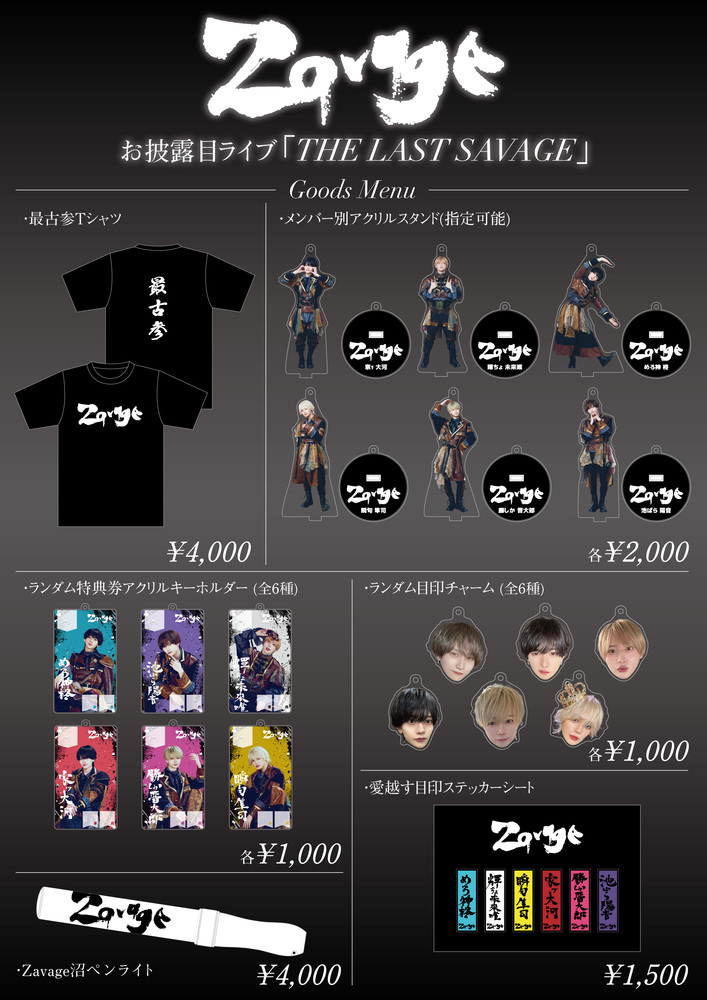 2026年5月19日(火)Zavageお披露目ライブ「THE LAST SAVAGE」グッズ販売について